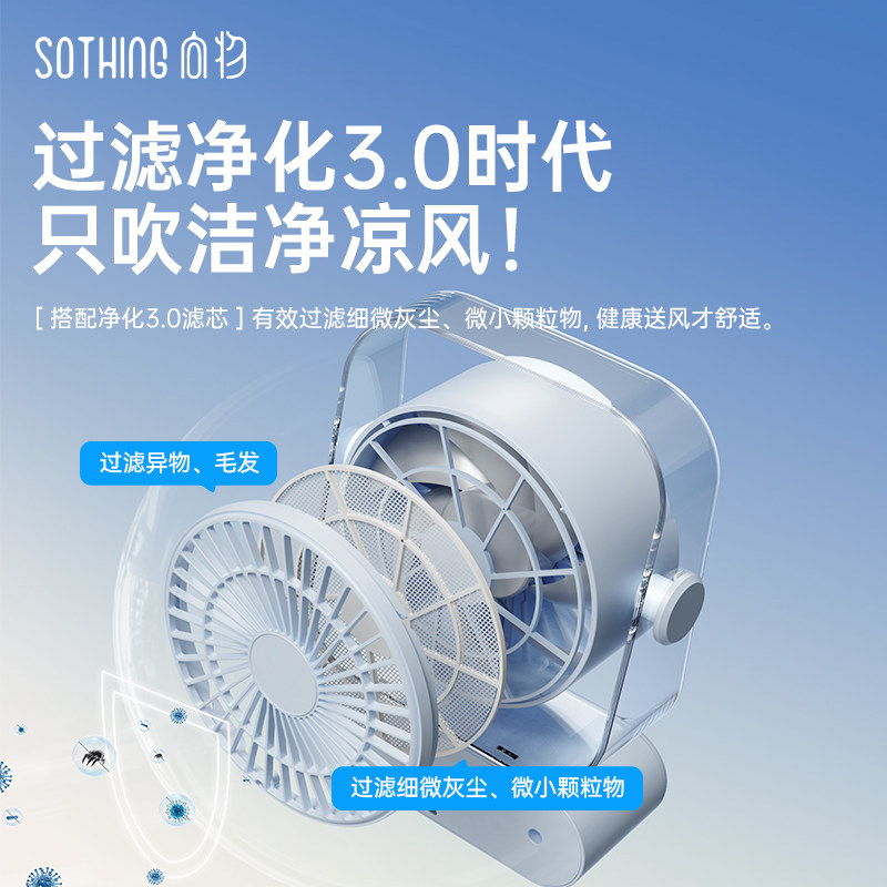 向物桌面风扇静音2026新款过滤小型透明凉扇电风扇净化式充电usb办公室工位电扇学生宿舍壁扇壁挂小风扇