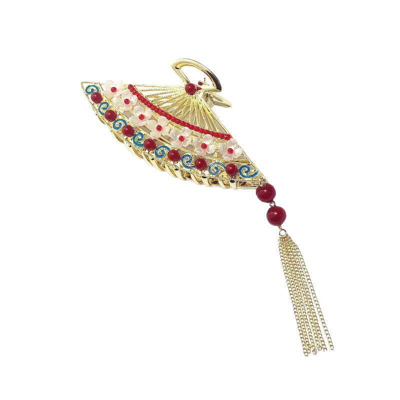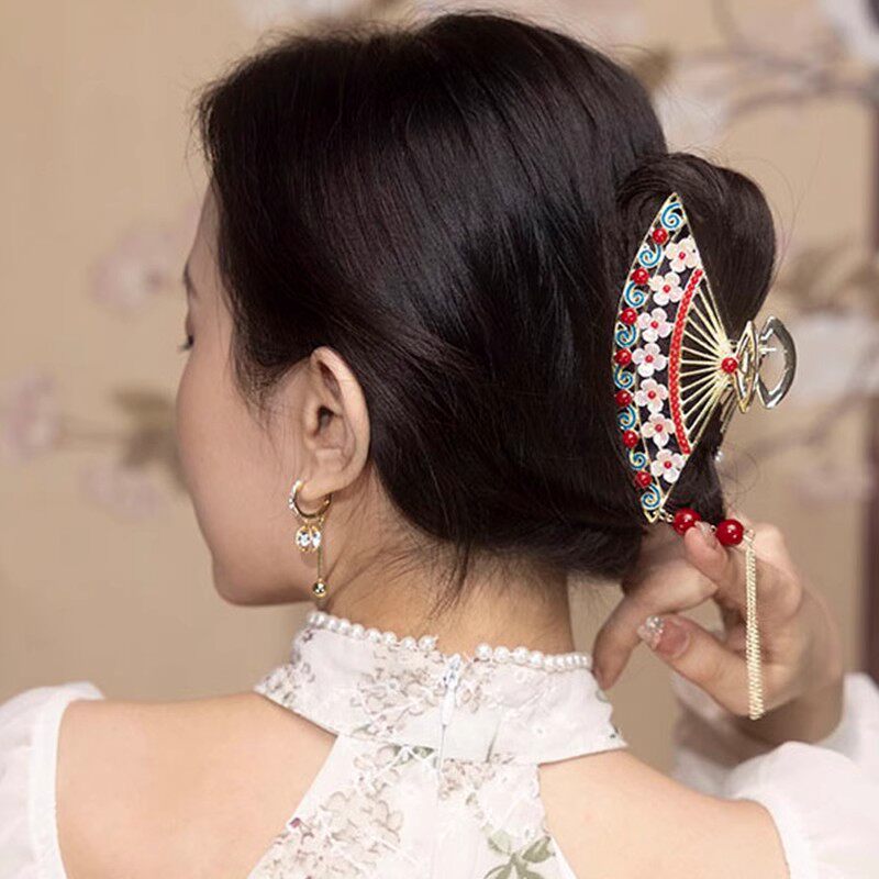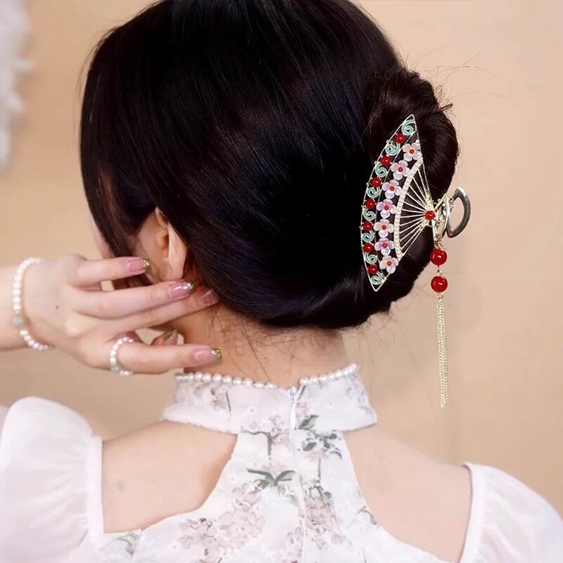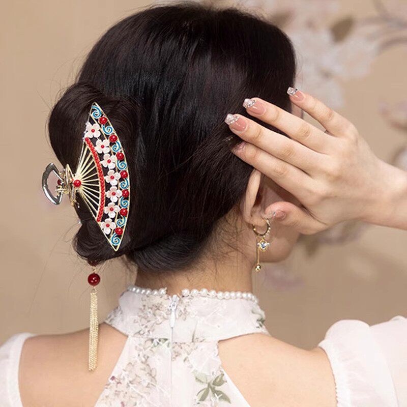古风扇子流苏金属抓夹2024新款中国风鲨鱼夹
