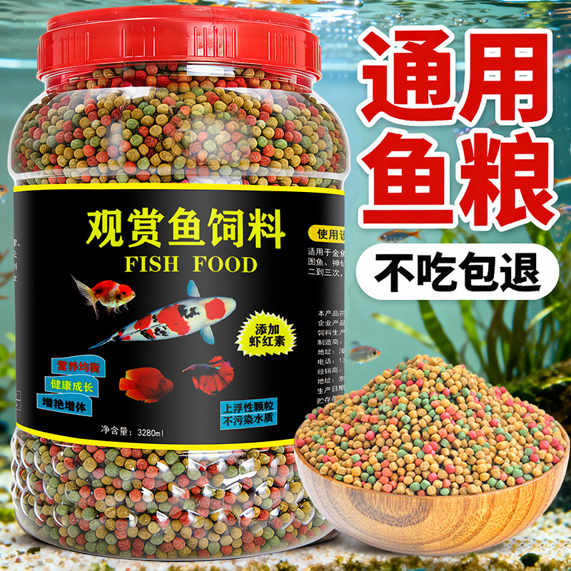 金鱼鱼食鱼饲料观赏鱼锦鲤增色鱼粮小颗粒不浑水专用大颗粒上浮型
