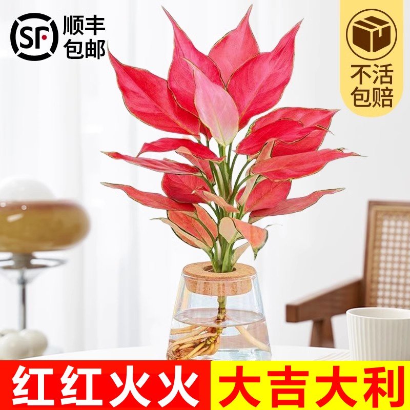 吉利红水培如意皇后室内盆栽植物发财树小绿植四季好养办公室花卉