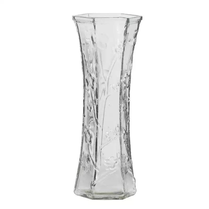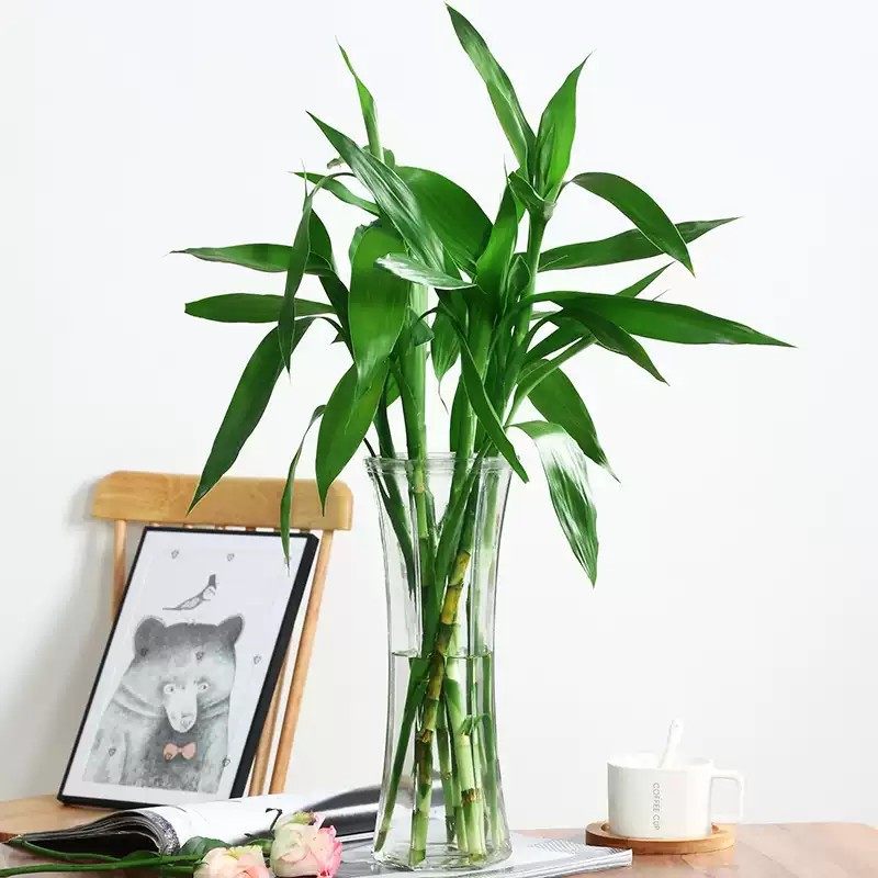富贵竹花瓶客厅家用玻璃大号透明六角圆形插花瓶摆件装饰桌面氛围