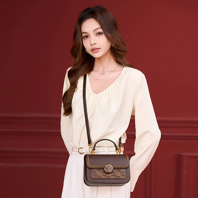 南风Chio2nd 磨砂牛皮栗木奶霜小方包冬季质感通勤链条单肩斜挎包