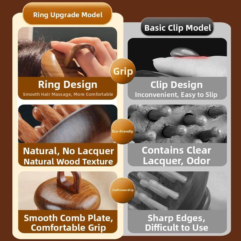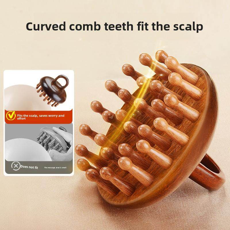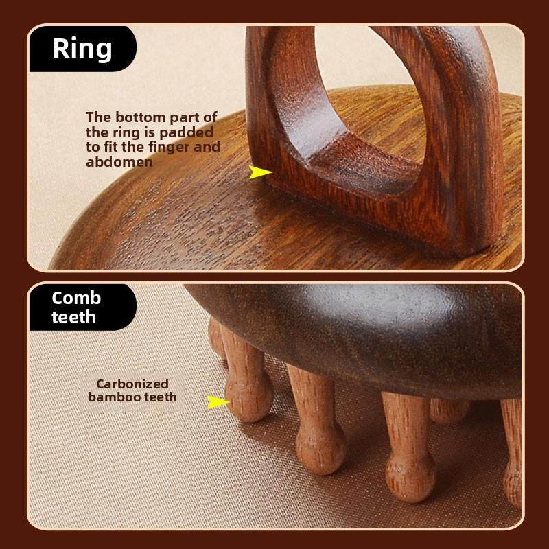 檀木指环梳牛角梳按摩梳头皮头部经络圆盘天然檀木头疗洗头刷梳子