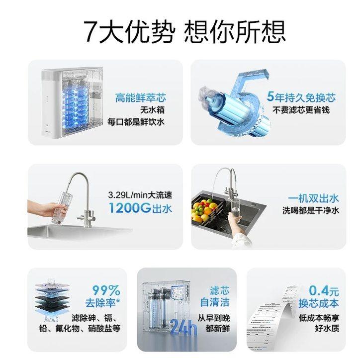 老板净水器家用直饮机1200G双出水RO反渗透厨下JV272A+GX07管线机