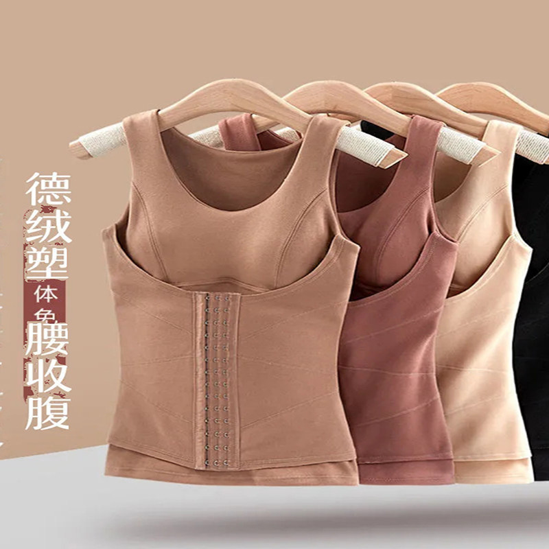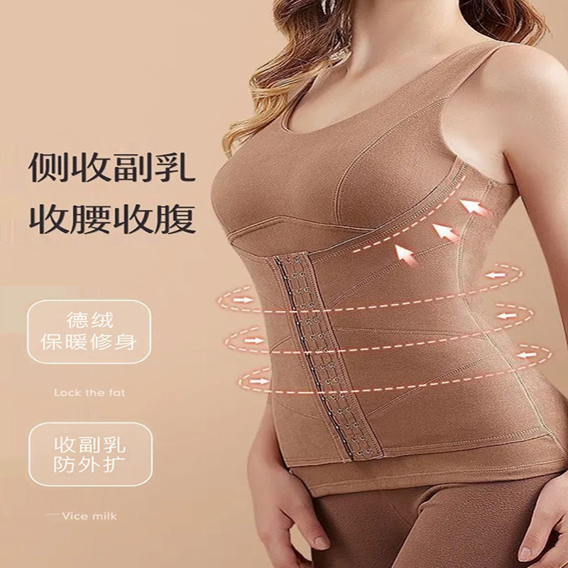 塑身收腹秋冬内衣带胸垫一体式无痕显瘦德绒保暖背心文胸塑形贴身