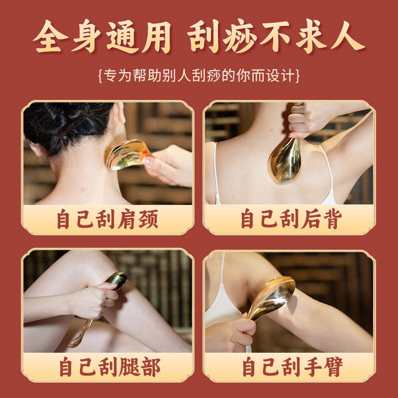 真黄铜刮痧勺子自己后背神器手臂背部肩颈全身通用铜制刮痧板经络