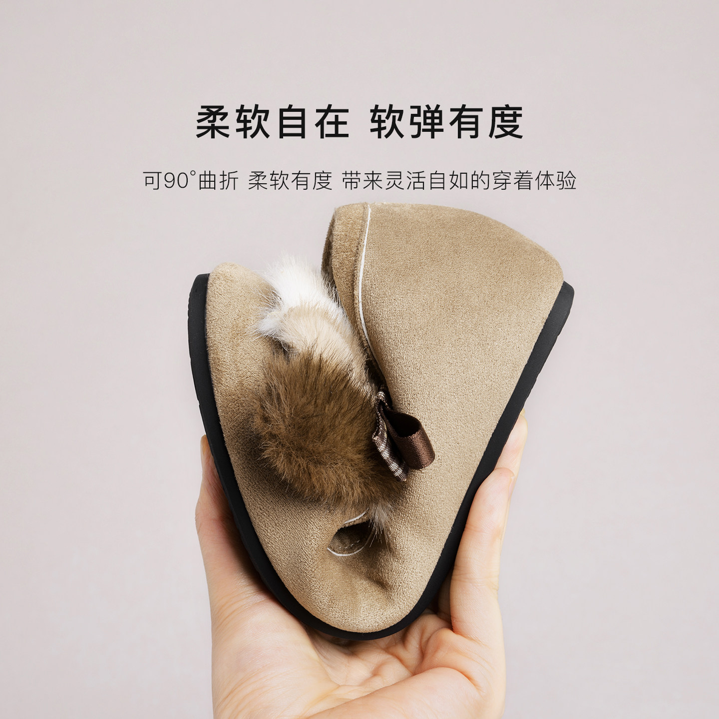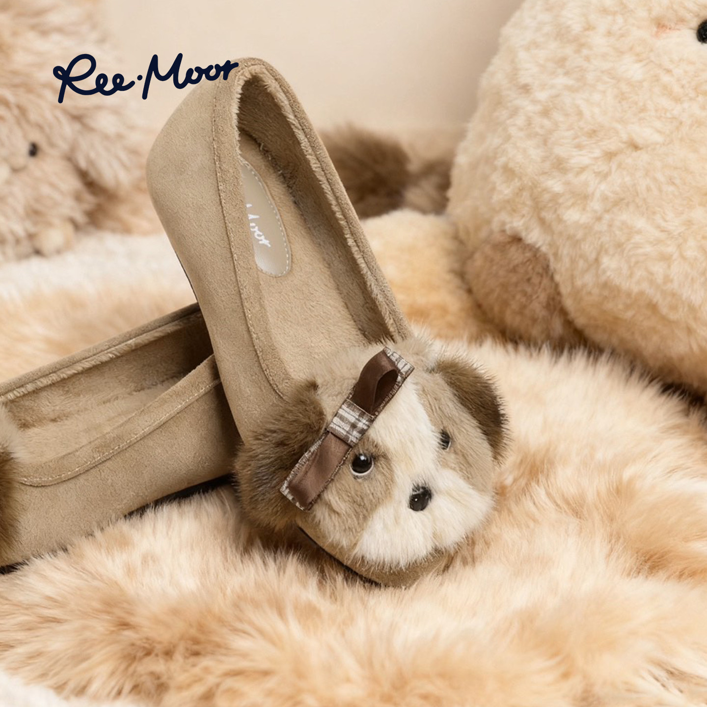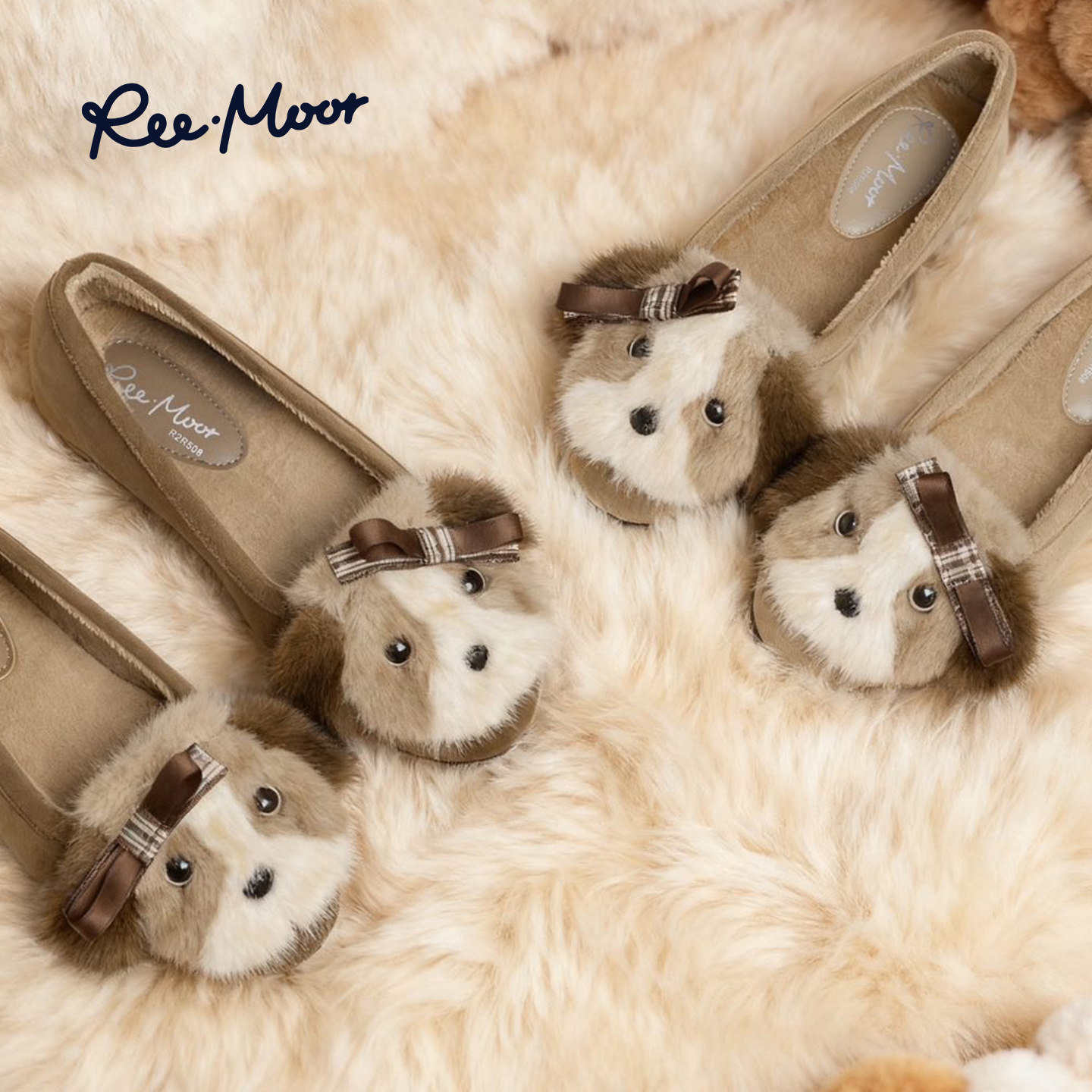 REEMOOR睿慕2025冬季新款卡通平底圆头加绒保暖一脚蹬毛绒单鞋女