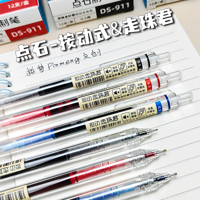 点石按动式走珠君中性笔速干静音笔0.5黑笔学生用刷题水性直液笔