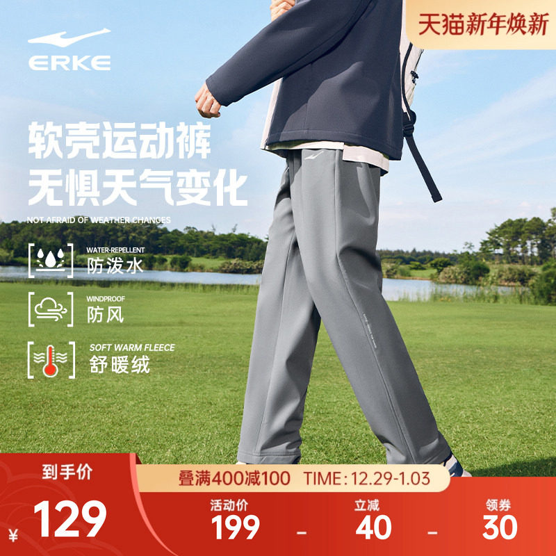 鸿星尔克加厚运动裤冬季男士加绒直筒长裤休闲裤男生防风软壳裤子