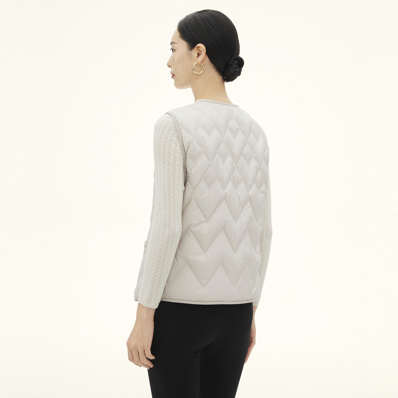 鸭鸭轻薄羽绒服马甲女V领反季基础修身背心休闲蓬松鸭绒马夹外套X