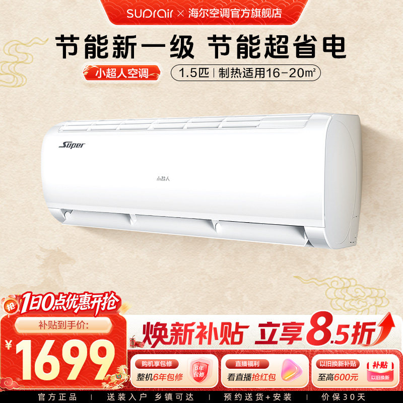 【超省电】小超人空调1.5匹官方家用新一级变频卧室冷暖挂机35FCC