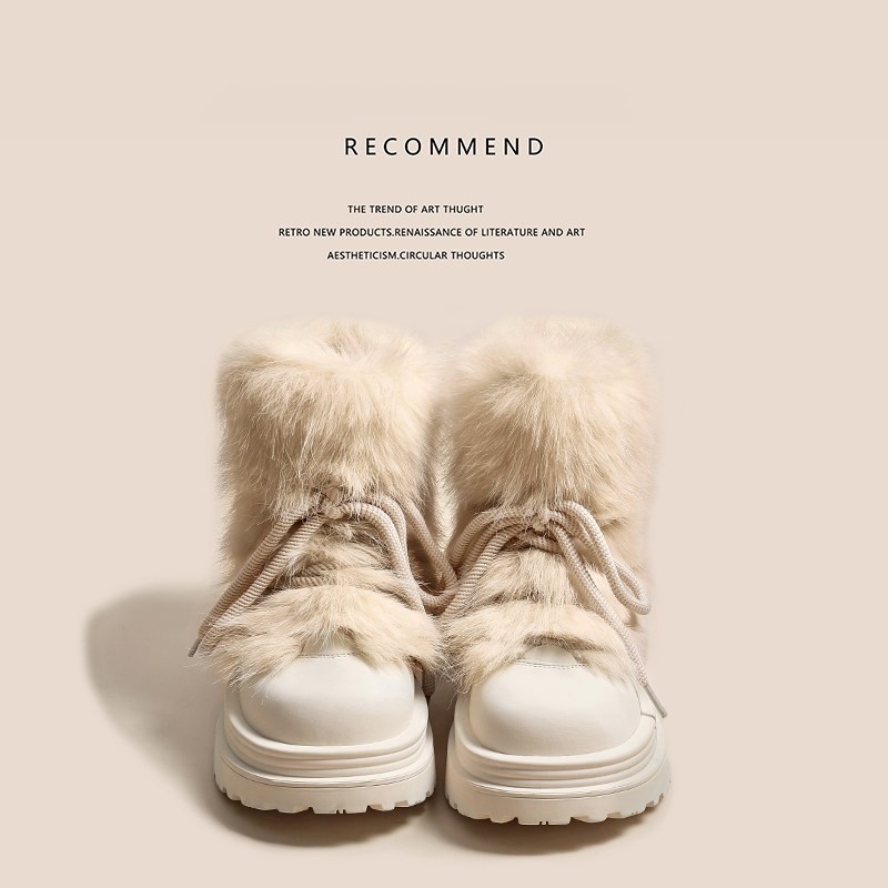 毛毛靴防滑雪地靴女秋冬新款加厚保暖中筒棉鞋厚底增高大头短靴子