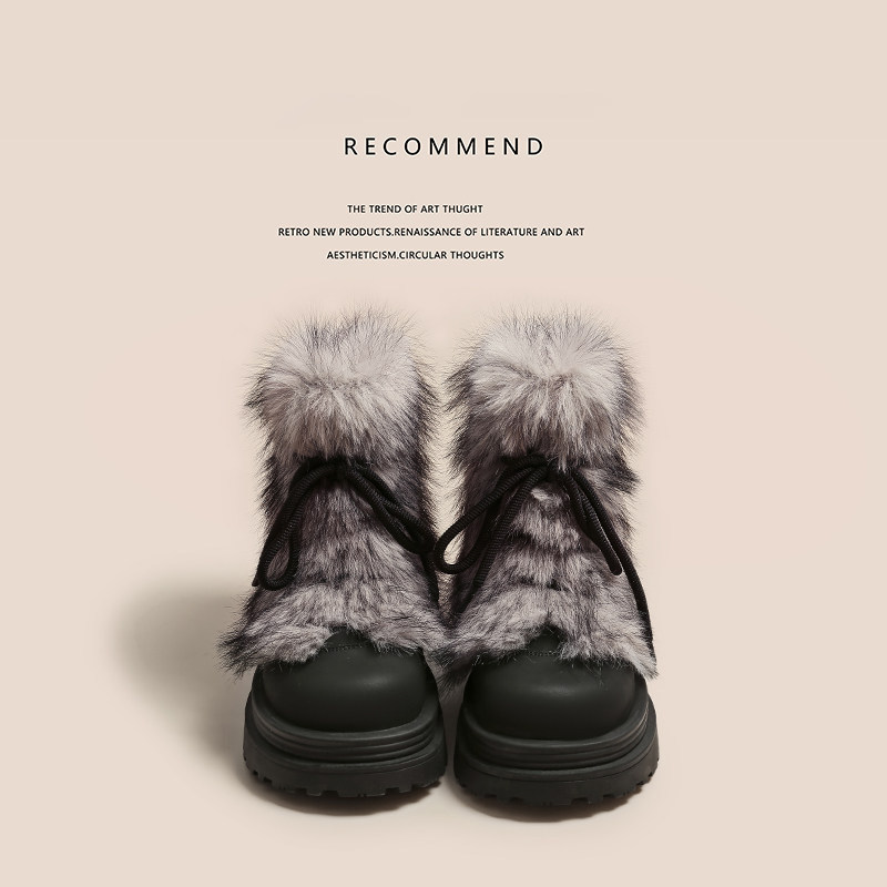 miu家厚底雪地靴女冬季真皮短靴羊毛侧拉链增高厚底加绒毛毛棉鞋