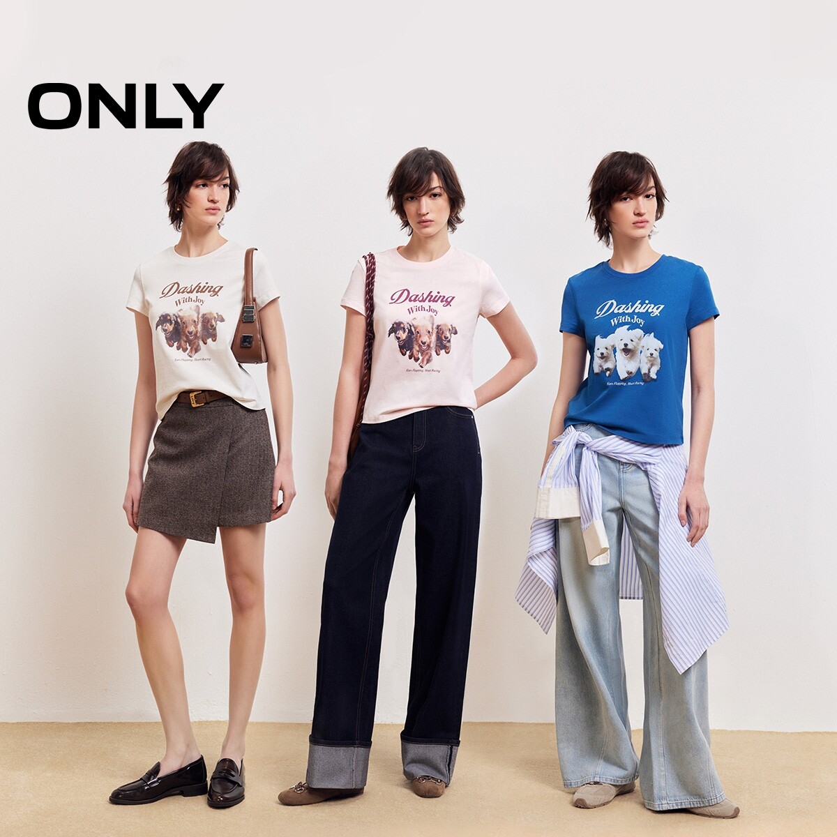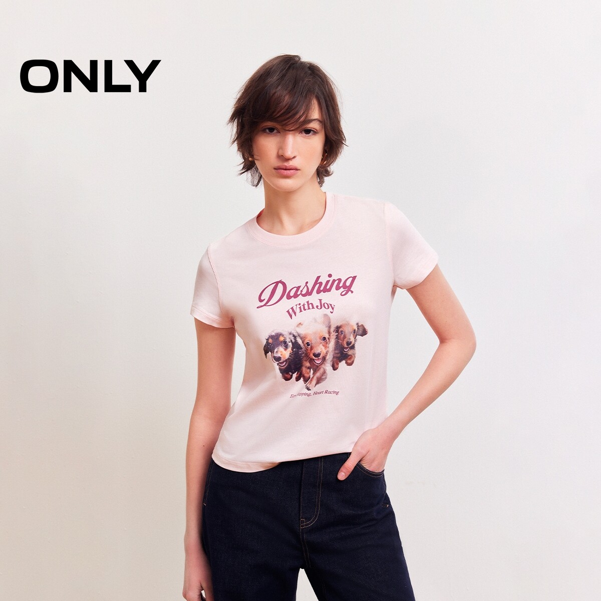 【宠物派对】ONLY2026春季新款纯棉上衣印花圆领正肩短袖T恤女