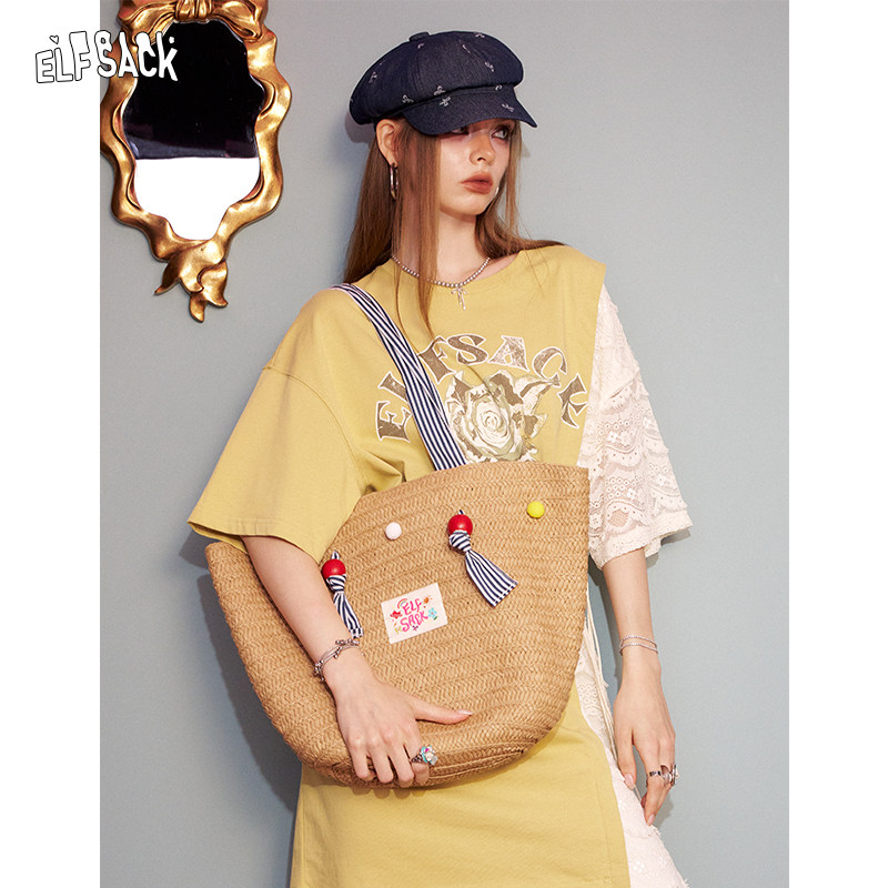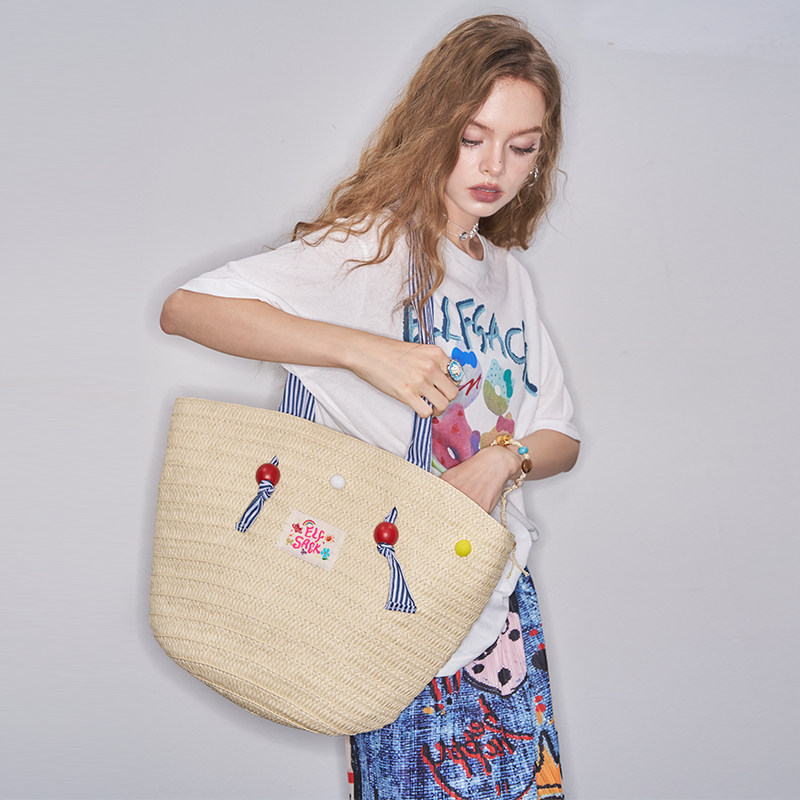 妖精的口袋条纹肩带大容量编织包2025年新款度假沙滩手提包单肩包