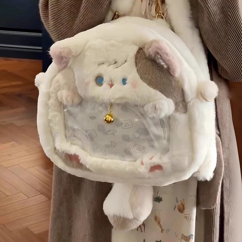 可爱猫咪痛包单肩毛毛双肩包小众学生通勤背包大容量毛绒斜挎手提