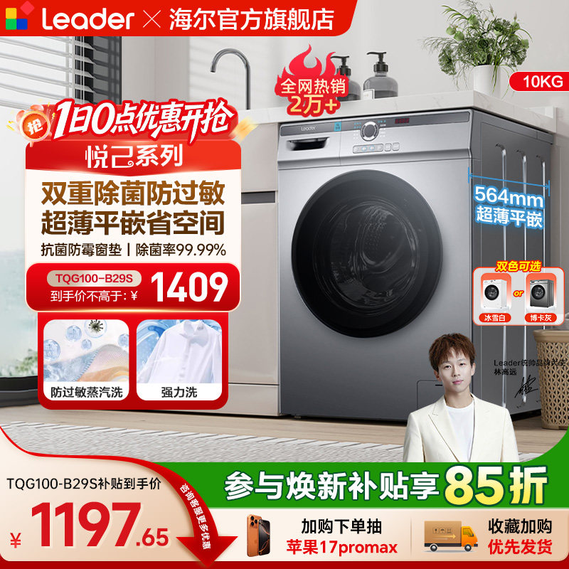 海尔出品统帅10kg全自动家用大容量超薄租房用滚筒洗衣机羊毛洗29