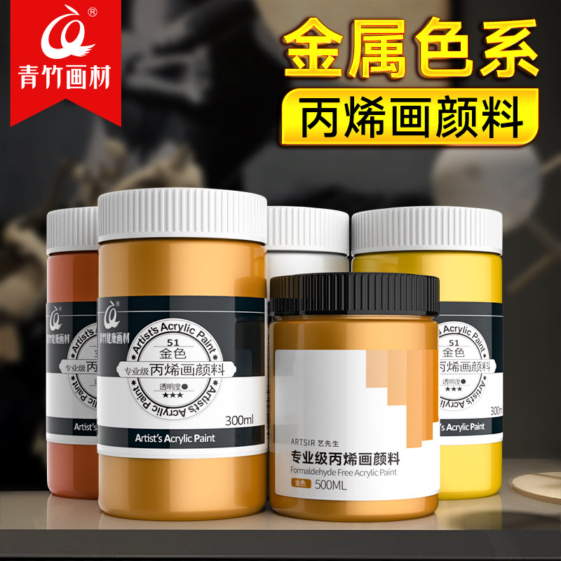 青竹金色丙烯颜料防水防晒不掉色diy手绘画鞋子石头炳漆颜料墙绘用涂料100ml丙烯画染料大瓶银色金属色300ml