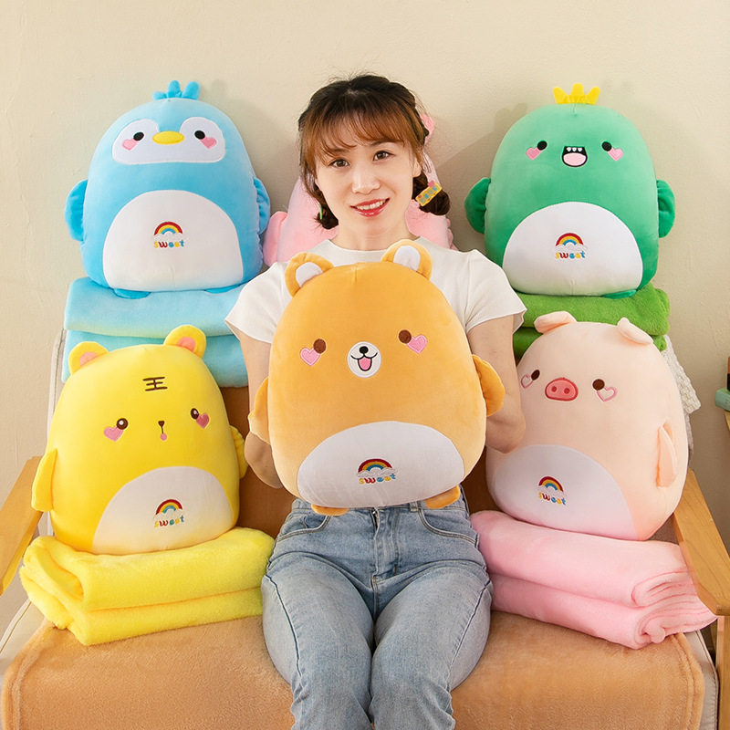 跨境新款空调被可爱玩偶毛毯抱枕两用午睡抱枕毯二合一公司礼品