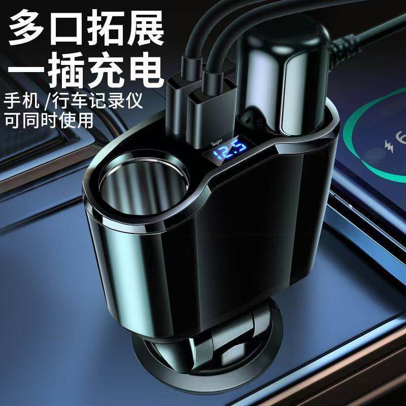车载充电器线超级快充头手机点烟器转换插头一拖三车充汽车用usb