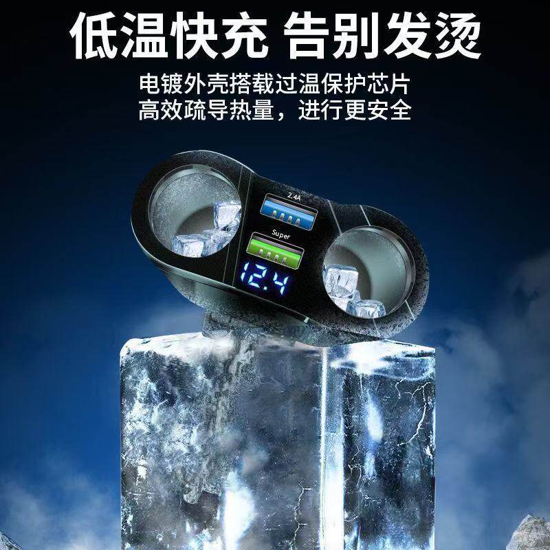 车载充电器汽车一拖二快充usb超级点烟器一分二扩展口手机
