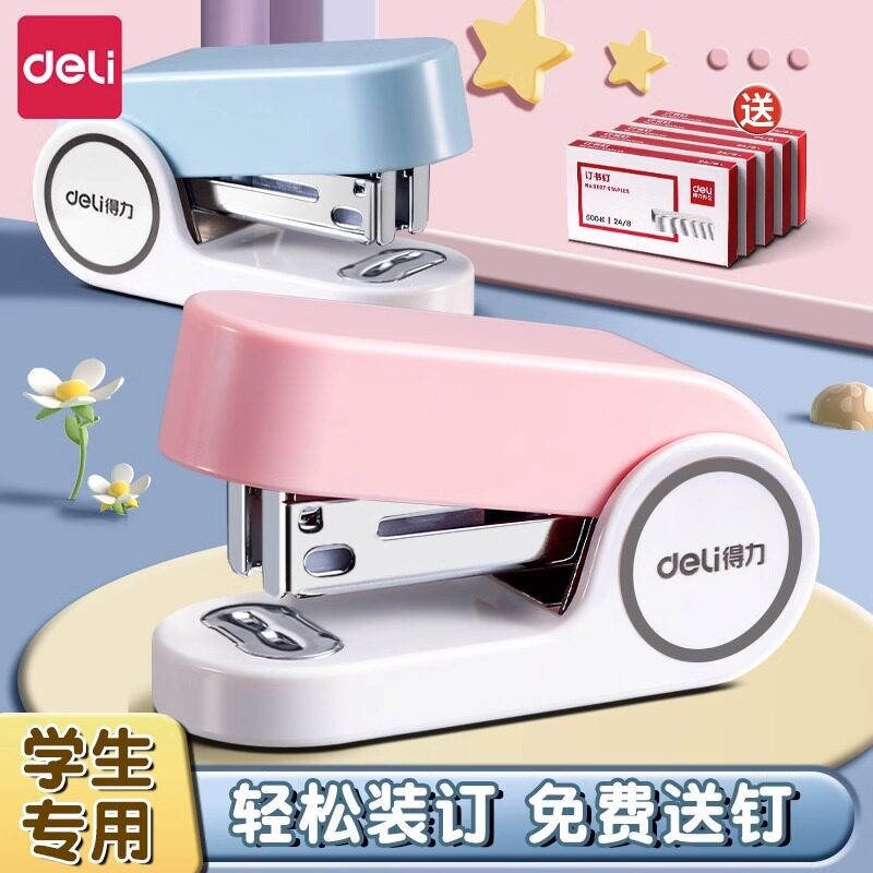 得力订书机迷你学生用简约订书器小型订书器家用马卡龙色多功能订书器装订机便携式办公文具用品