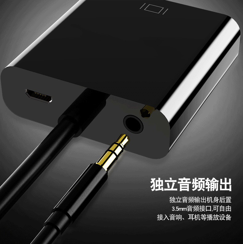 hdmi转vga转换头带音频供电笔记本电脑显示