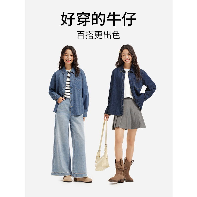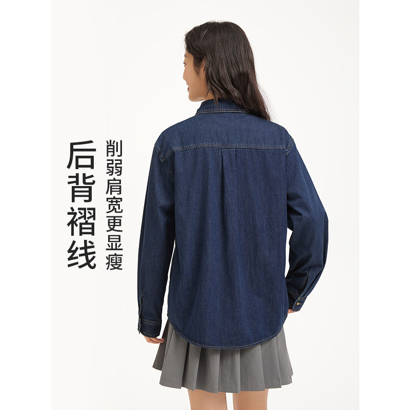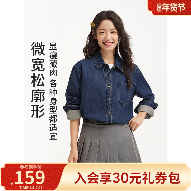 热风2026年春季新款女士松弛复古感基础牛仔衬衫棉感透气经典廓形