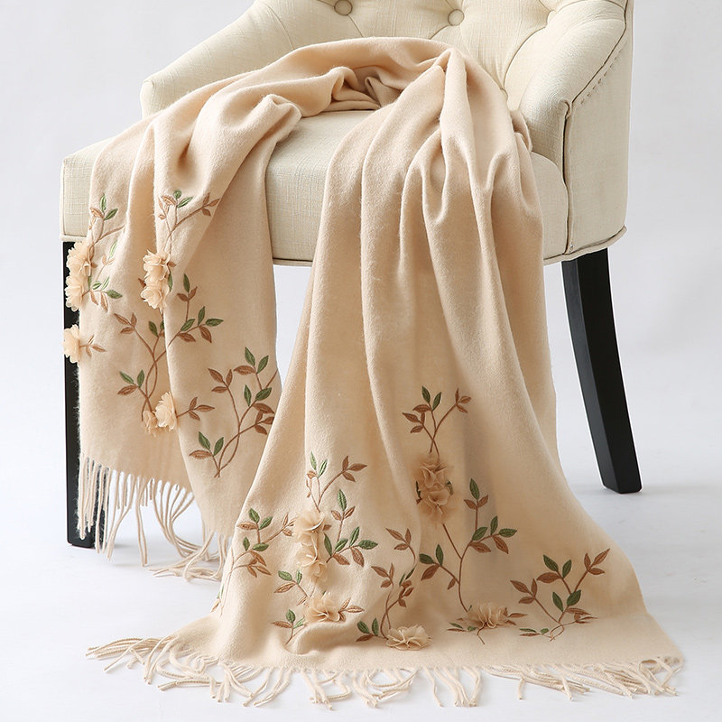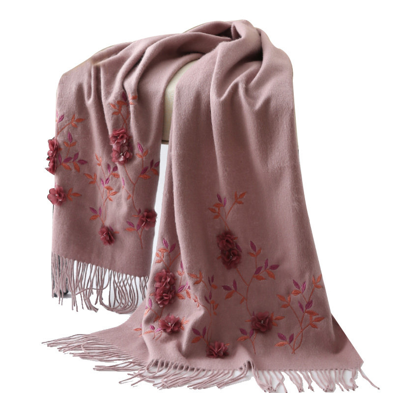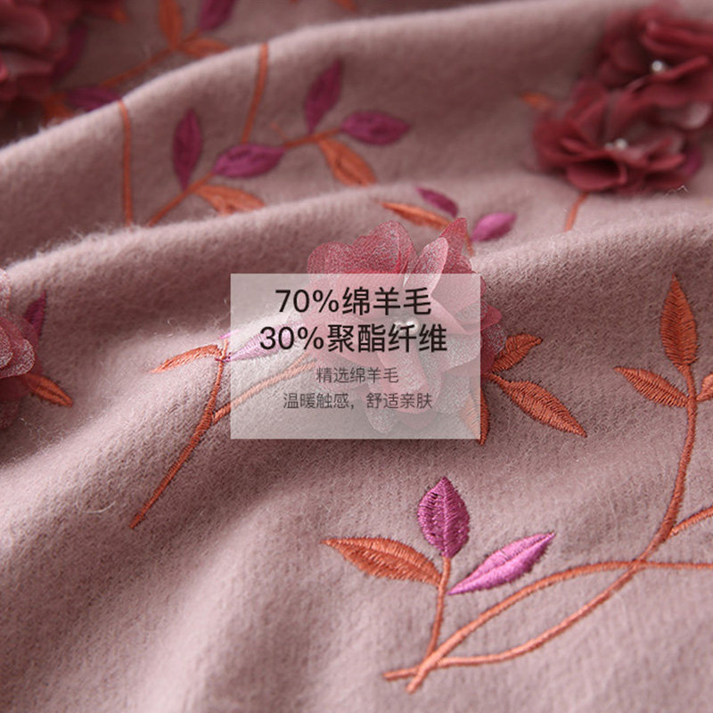 恒源祥羊毛围巾女士秋冬季刺绣花民族风披肩中年妈妈保暖围脖围巾