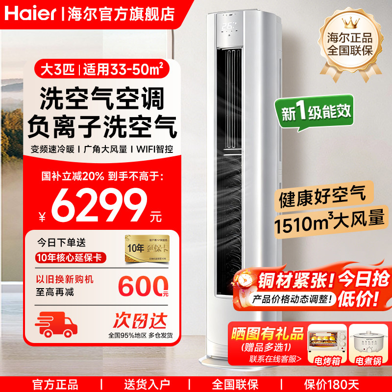 【洗空气】海尔空调大3匹max新一级变频家用客厅立式新品Pro柜机