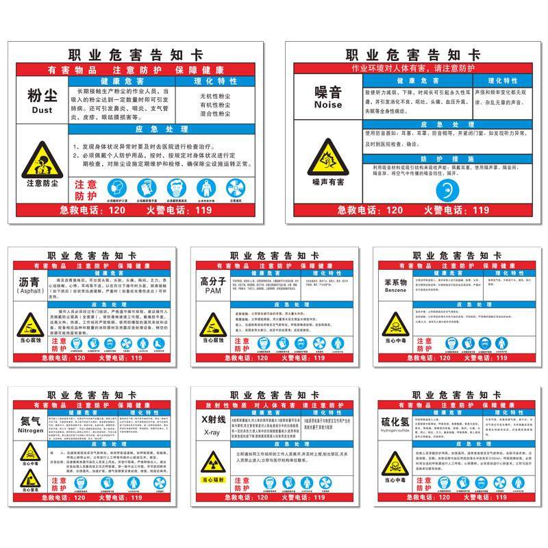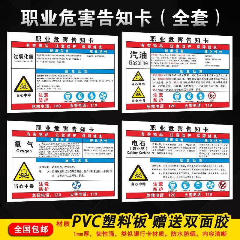 过氧化氢汽油电石职业病危害安全告知卡氧气苯系物有毒有害气体当心中毒危险废物化学品工厂车间PVC标识牌