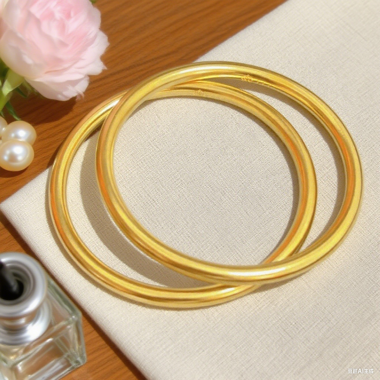 古法黄金手镯女越南沙金仿真包银素圈实心结婚首饰不掉色传承合金