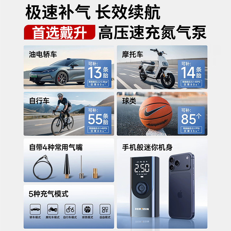 车载充气泵便携式汽车用电动打气筒氮气轮胎带测胎压小型自动加气