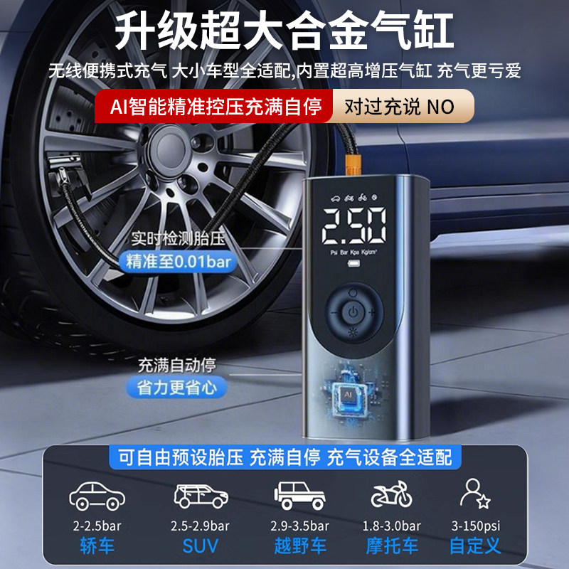 车载充气泵无线汽车打气泵电动打气筒车用高压轿车轮胎带胎压监测