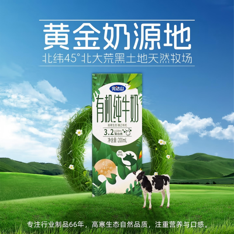 完达山有机纯牛奶200ml*24盒无添加宝宝全脂奶常温生牛乳生态