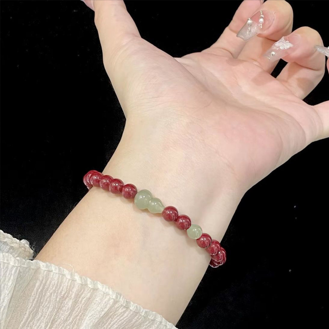 【福禄平安】玉石葫芦朱砂手链繁荣昌盛财源广进男女都能带东陵玉