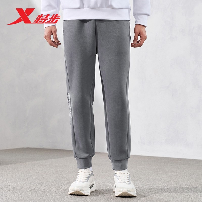 特步加绒卫裤男士加厚秋冬款裤子针织保暖裤直筒裤子休闲运动裤