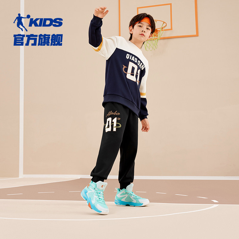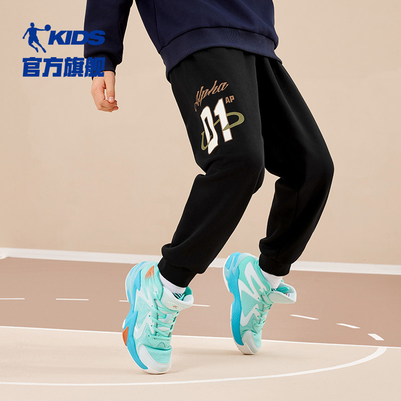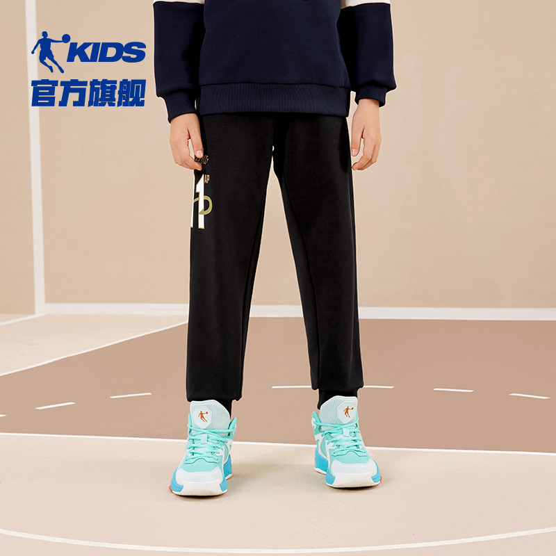 商场同款乔丹童装男童加绒运动裤2025冬季新款中大童保暖长裤裤子