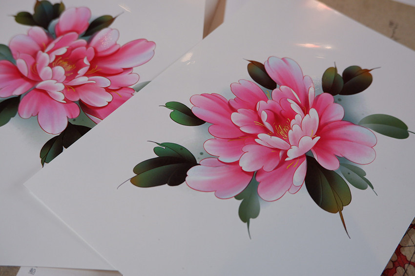 zingtattoo日式浮世绘牡丹纹身贴纸遮瑕古风汉服和服防水女持久