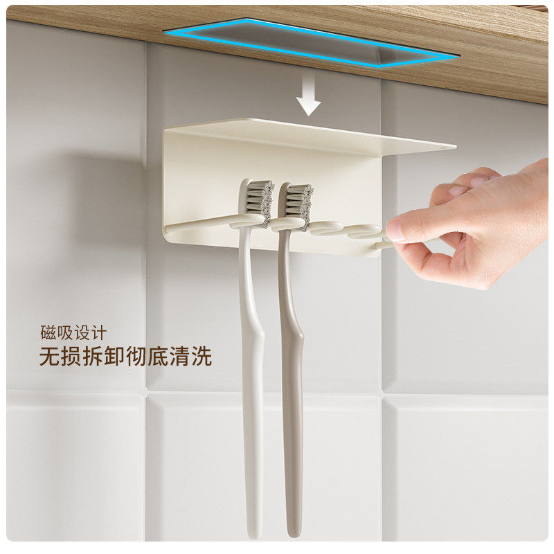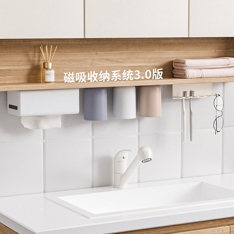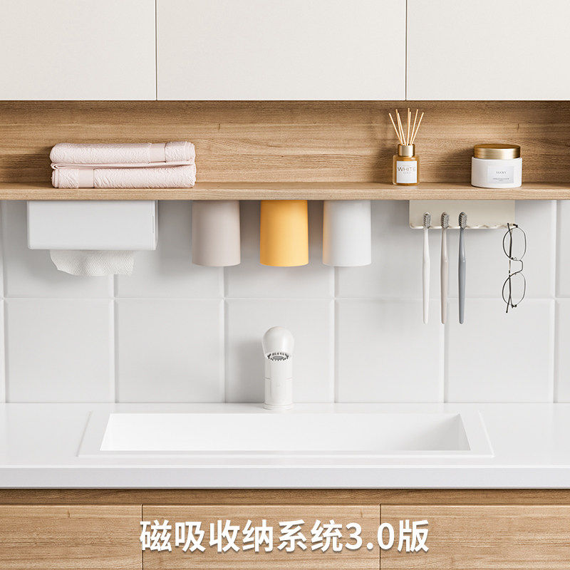 磁吸式牙刷架组合浴室置物架北欧风格牙具架牙膏台面镜柜收纳悬挂