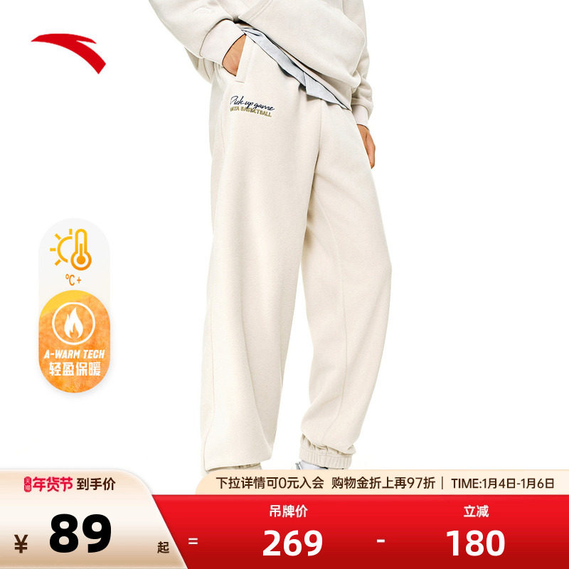 安踏厚绒长裤丨加绒加厚针织卫裤男秋冬季保暖宽松黑色潮流男裤