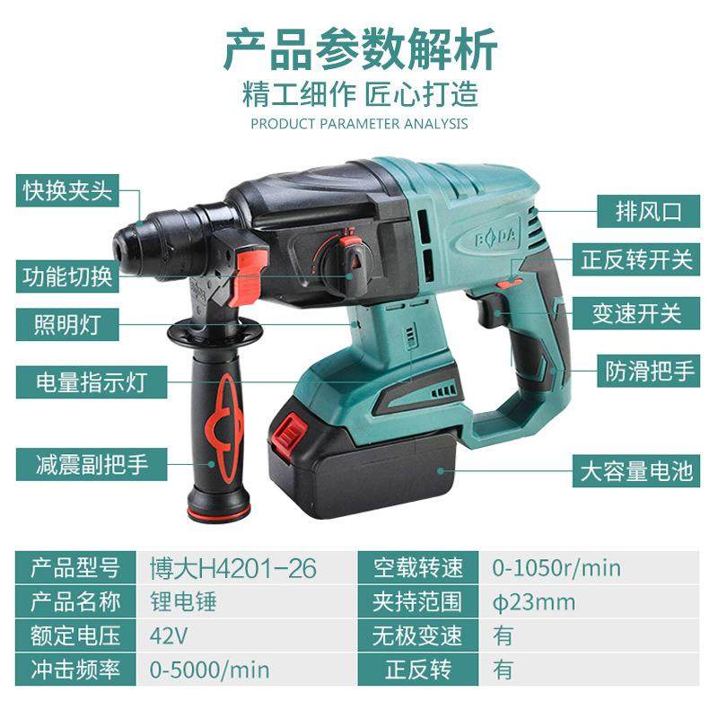 博大充电式无刷锂电锤多功能冲击钻家用锤镐42V工业级双用破碎锤