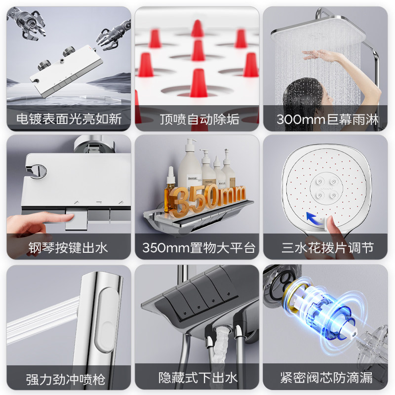 九牧卫浴淋浴器琴雨花洒套装官方卫生间沐淋雨时尚四出水钢琴按键