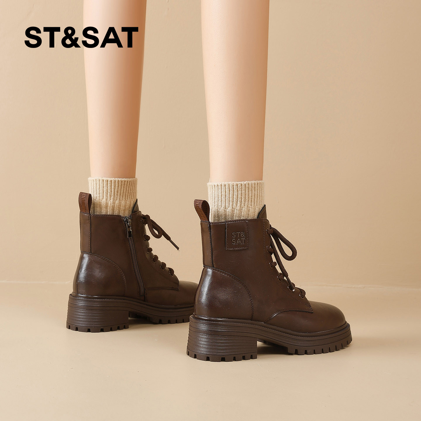 星期六马丁靴女2025冬季新款女靴女款爆款靴子短靴加绒真皮时装靴