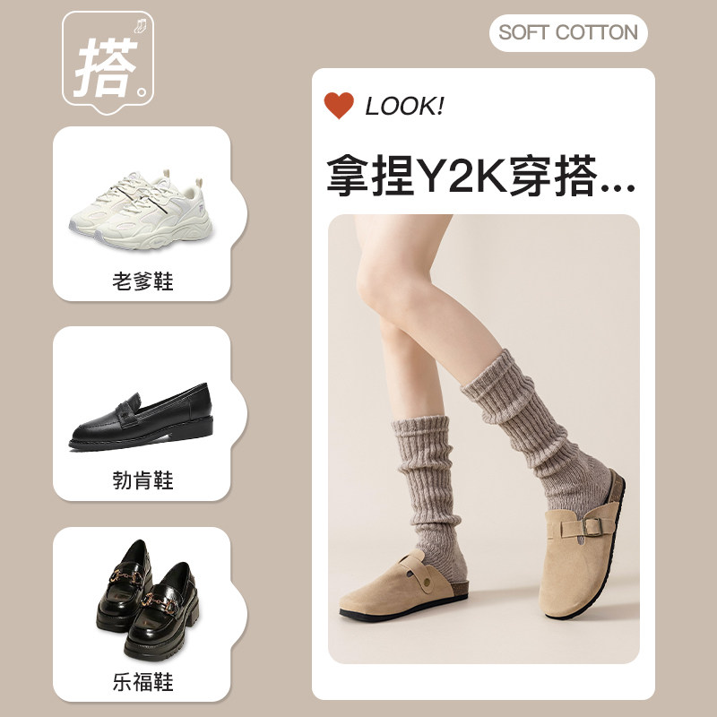 灰色袜套堆堆袜子女春秋冬季配鲨鱼裤小皮鞋针织y2k日系小腿腿套