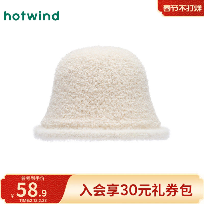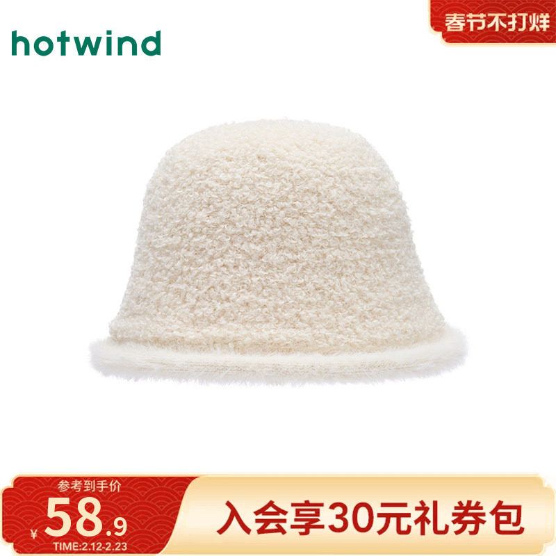 热风女士帽子2025年冬季新款女士卷边毛绒盆帽子显脸小水桶渔夫帽