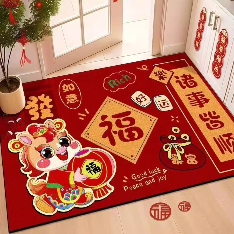 马年红色喜庆地垫入户门新年家用进门地毯玄关门厅脚垫子防滑门垫