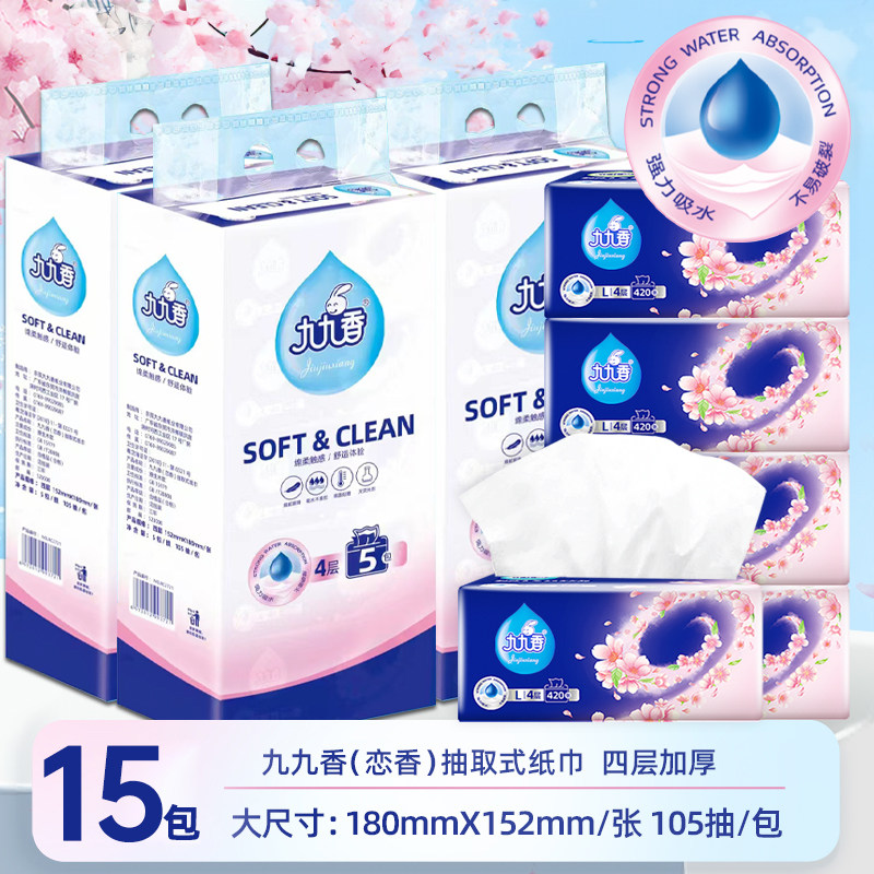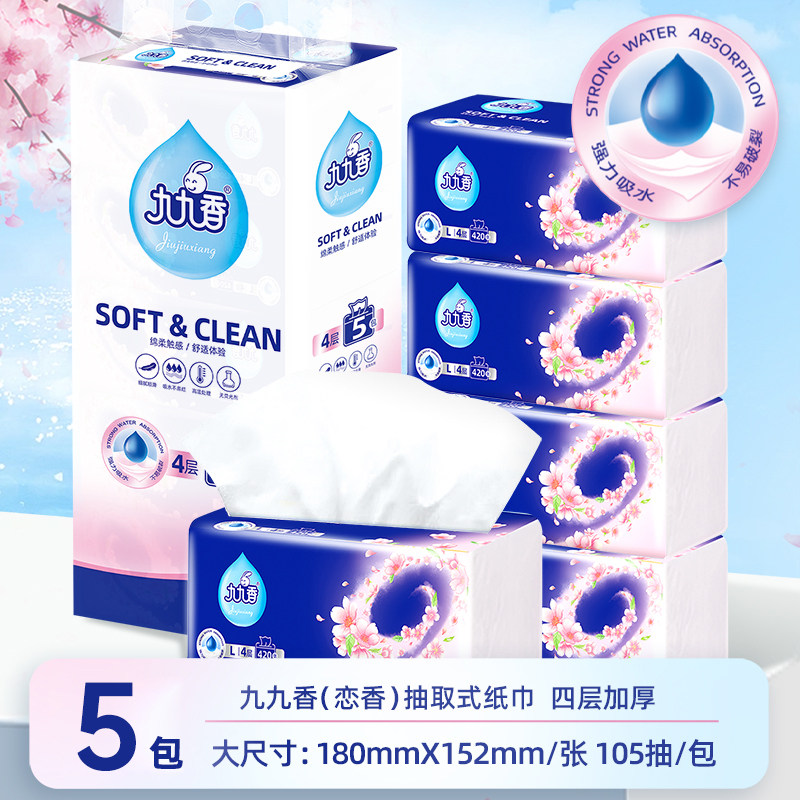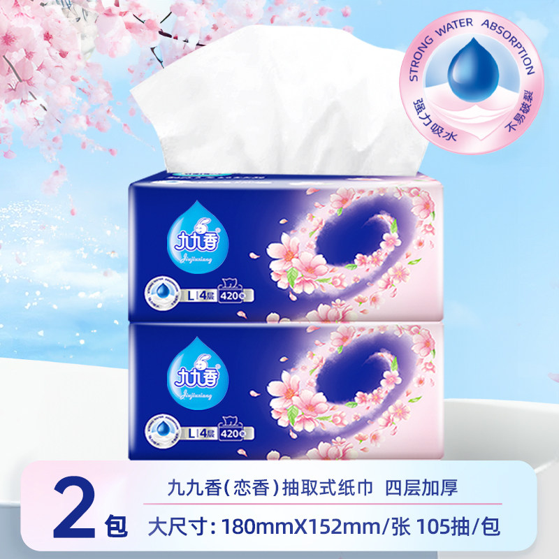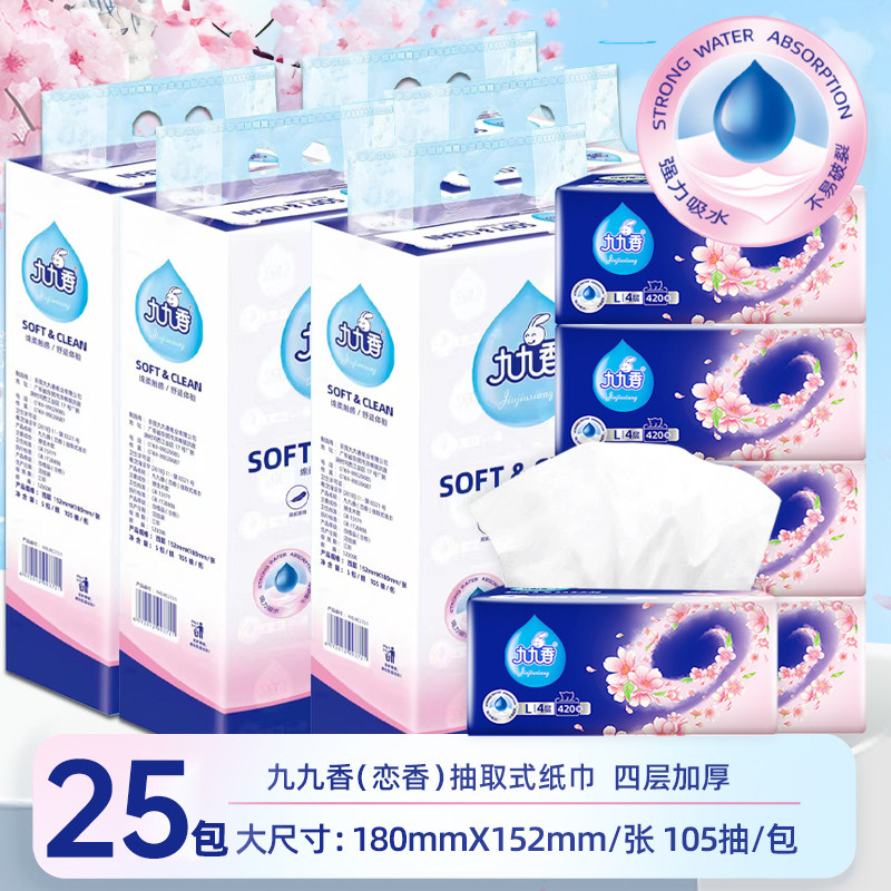 九九香抽纸25包420尺寸L码商实惠2包家用餐巾纸香味无香柔软母婴