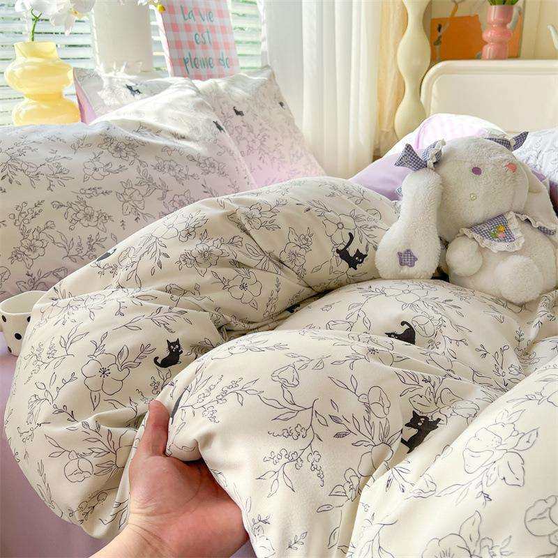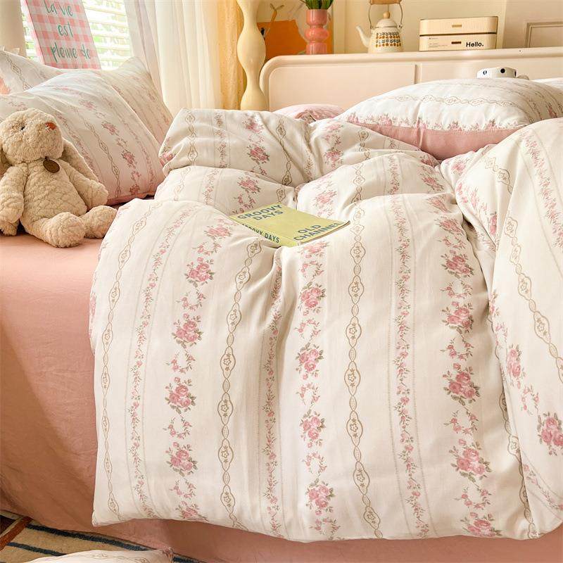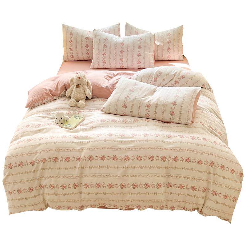 A类母婴级水洗棉小清新四件套 超柔绵柔宿舍床单被套床上用品套件