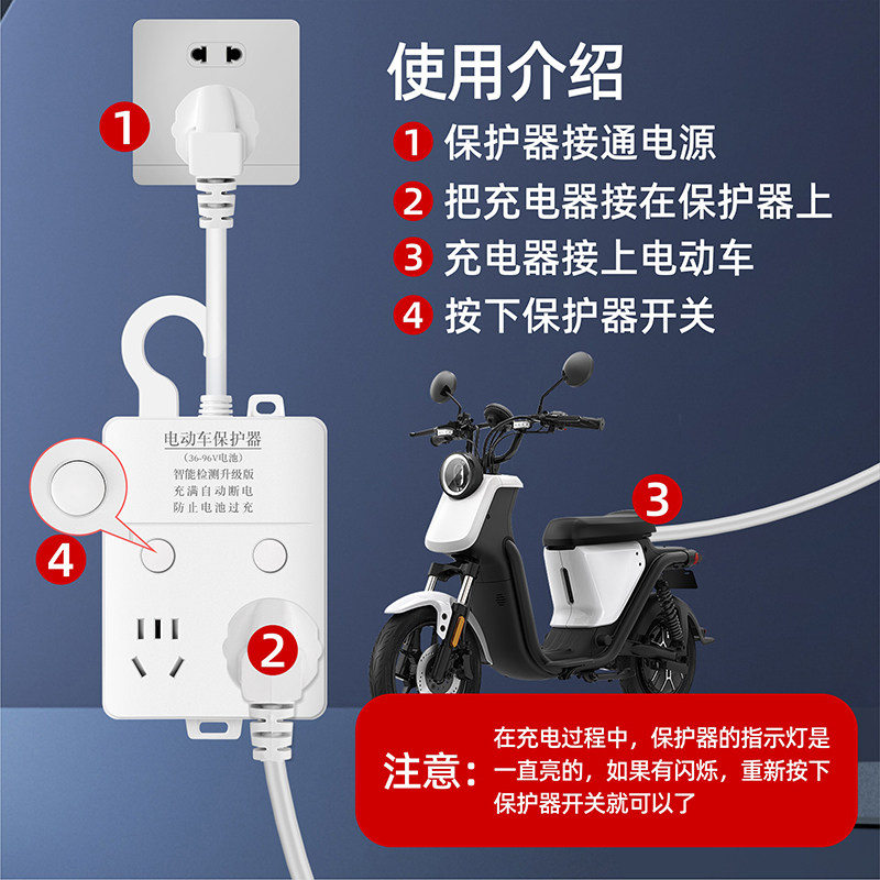 电动车充电保护器自动断电插座智能延长线排插电瓶车防过充定时器